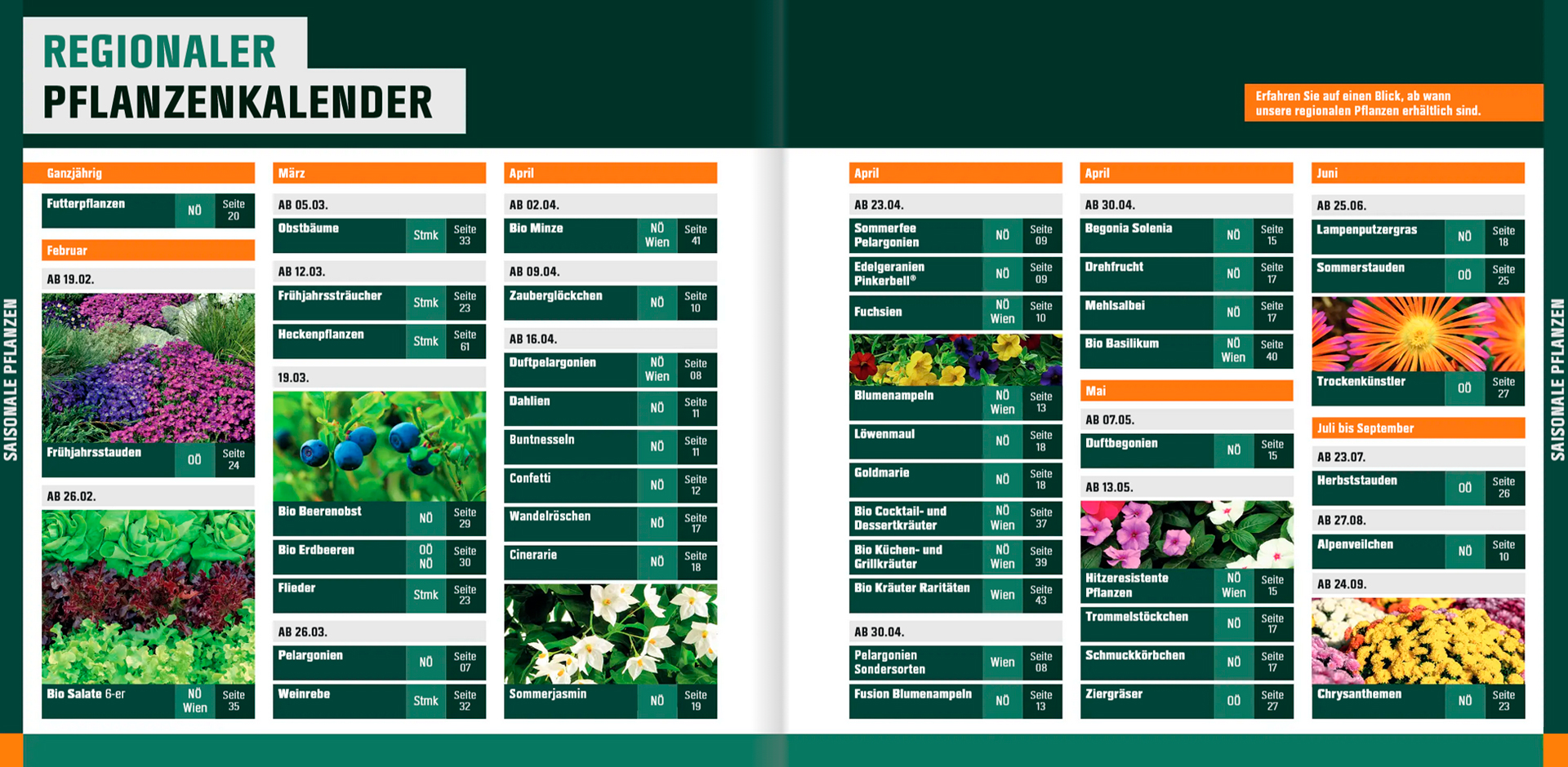 Diese Regionalität spiegelt sich besonders in unserem Pflanzensortiment wider. Deshalb arbeiten wir eng mit ortsansässigen Gärtnereien zusammen. Sie sind für uns wertvolle Partner, um Ihnen saisonale Pflanzen unter dem Motto „Grow in Austria“ anbieten zu können. Darüber hinaus führen wir auch ausgewählte Sortimente unserer Partner aus Italien, Spanien, Holland sowie Norddeutschland.